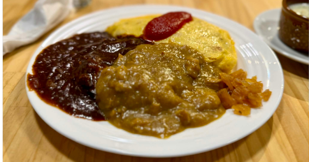 - メニュー: 三色ライス(1,400円)、カレーライス、オムライス(各900円〜) 他