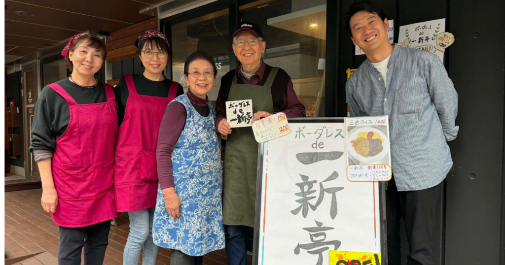 国際交流シェアハウスに入居している海外からの若者たちと、地域の歴史を支えてきた老舗店。一新亭様はこの期間を「ボーダレス de 一新亭」と呼び、復刻メニューや新メニューの開発、そして新しい客層との交流を通じた、未来への挑戦の場として捉えてくださっています。