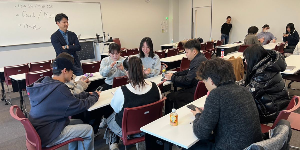 前半では、ボーダレスハウスの国際交流シェアハウス事業およびホームビジット事業を取り上げ、社会課題からビジネスモデルへと繋げる過程や戦略について紹介。後半では、事前に考えてきた「ソーシャルコンセプト」と「ビジネスコンセプト」をもとにグループワークを実施。闇バイトやフードロス、日本で生活する外国人が直面する課題などを切り口にした多様なソーシャルビジネスのアイデアが提案され、活発な意見交換が行われました。授業の最後には代表学生による発表と、弊社代表取締役の李からフィードバックを行いました。